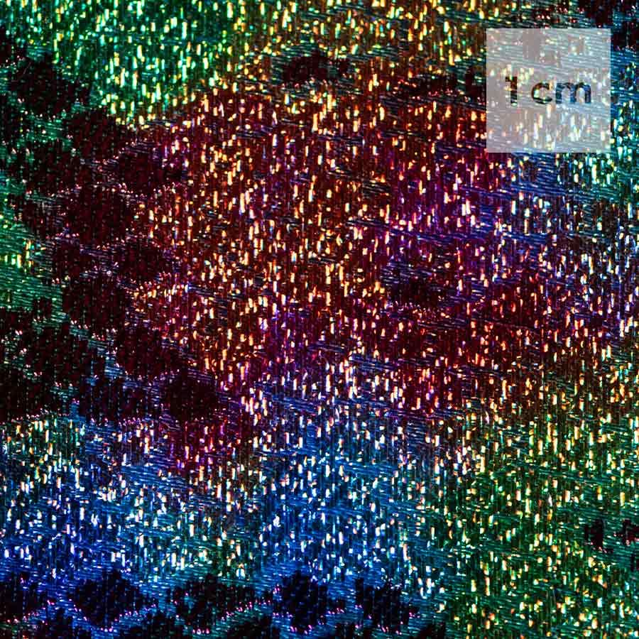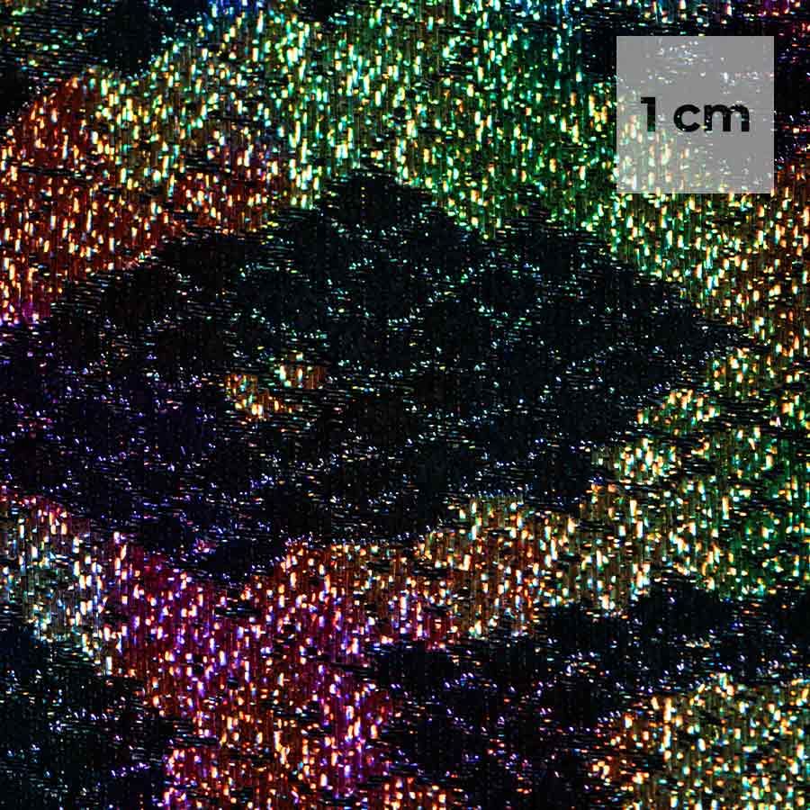 Base di poliestere su cui si innesta un ricco discorso cromatico esaltato dal contributo della luce. L'effetto pitonato è fortemente caratteristico e percepibile anche al tatto.