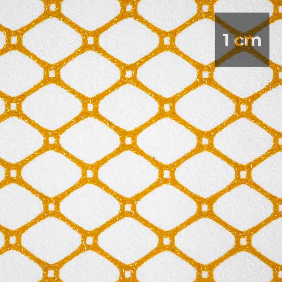 Il ripetersi di moduli geometrici di Goal fornisce un interessante colpo d'occhio su un disegno che richiama le maglie di una rete. L'effetto al tatto è materico, grazie a una combinazione di poliammide e poliuretano.