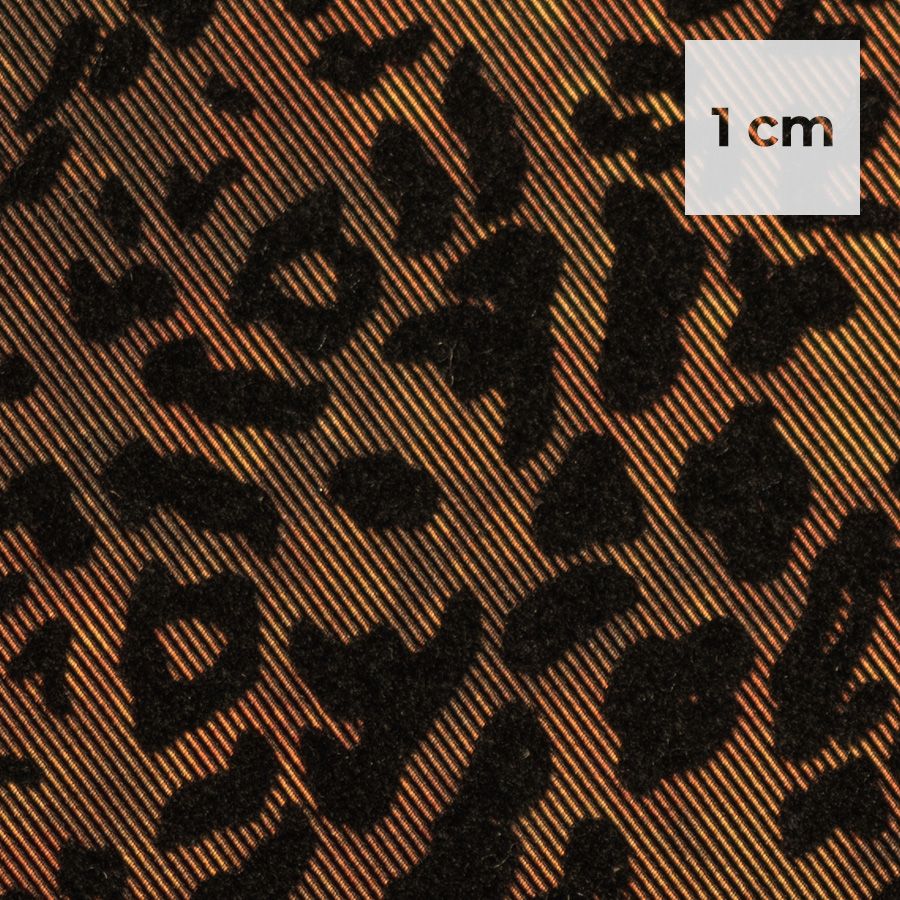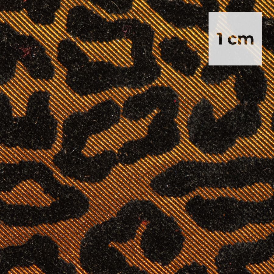 La lavorazione a flock conferisce alle fibre dell'articolo una salienza tattile notevole, con una resa morbida intervellata da una trama regolare.